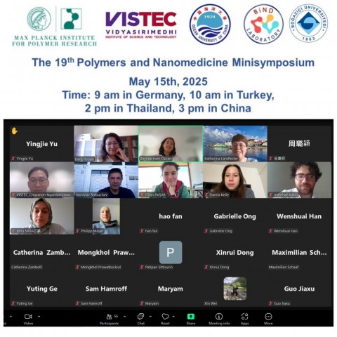 15 Mayıs 2025 tarihinde '19. Polymers and Nanomedicine Minisymposium' un Boğaziçi Üniversitesi Biyofonksiyonel Nanomalzeme Tasarım Laboratuvarı (BIND Lab, Banu Iyisan, Türkiye), Max Planck Polimer Araştırma Enstitüsü (Katharina Landfester, Almanya), Vidyasirimedhi Bilim ve Teknoloji Enstitüsü (Daniel Crespy, Tayland) ve Çin Okyanus Üniversitesi (Shuai Jiang, Çin) iş birliğiyle gerçekleştiğini paylaşmaktan mutluluk duyuyoruz. Etkinlikte, ışık kullanılarak sentetik hücrelerdeki uzamsal-zamansal kontrol çalışmalarından akıllı nanokapsül bazlı ilaç taşıma teknolojilerine kadar ilham verici sunumlar yer aldı.